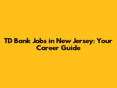 TD Bank Jobs In New Jersey: Your Career Guide